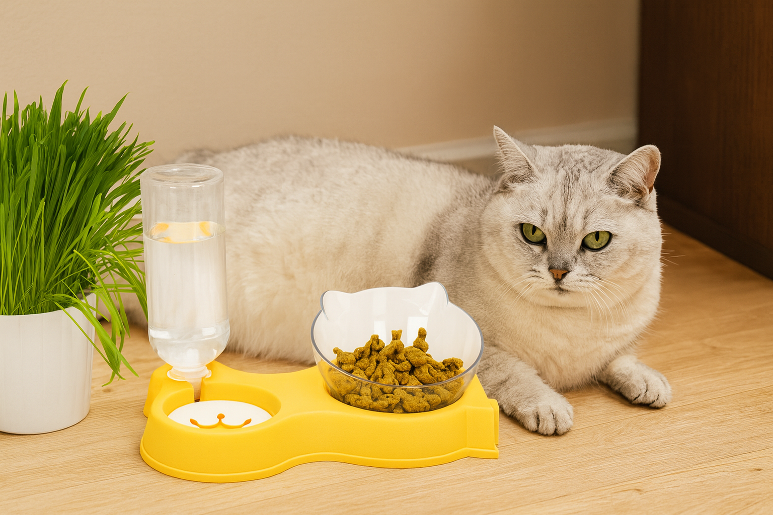 ✔ Visok položaj činije – štiti vrat i kičmu mačke prilikom jela.